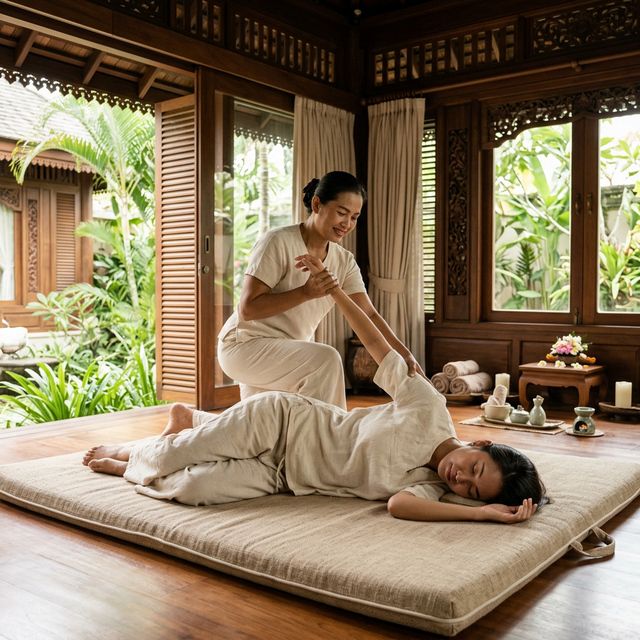 Traditional therapy combining stretching, acupressure, and aromatherapy.